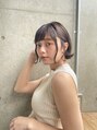 全体をブラントカットでやや前上がりでシルエットを作り、質感調整で外ハネをした時の毛先の柔らかさを出しました。近頃、人気なミニボブはカットが全てです!