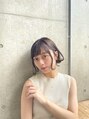 全体をブラントカットでやや前上がりでシルエットを作り、質感調整で外ハネをした時の毛先の柔らかさを出しました。近頃、人気なミニボブはカットが全てです!