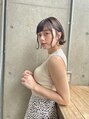 全体をブラントカットでやや前上がりでシルエットを作り、質感調整で外ハネをした時の毛先の柔らかさを出しました。近頃、人気なミニボブはカットが全てです!