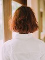 ミディアムウルフパーマにオレンジアンブレラカラー