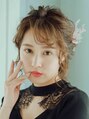 まとめてありますが長さは鎖骨より長いスタイルにはなってます!ツイストさせほぐした束を何個か作り最後にまとめたスタイル!アレンジと髪飾りで可愛い雰囲気なので、まとめる位置はあまり高くすると甘々になるので低めの位置がオススメ【稲毛】