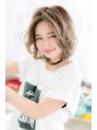 外国人風ゴールドベージュ大人かっこいいかきあげボブa1
