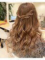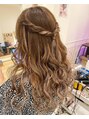 巻き下ろしにちょっとだけロープ編みで、ハーフアップ風!
