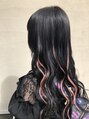 プルエクステダイヤモンド90本黒髪ロングにエクステでピンクのハイライト♪