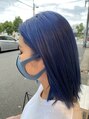 ネイビーブルー×パッツンボブビビットカラー個性派な方におすすめです。前頭は勿論、インナーカラーで一味加えてもありかなと思います。こちら特殊なカラー剤を使っていますので、要相談になります