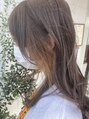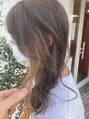 元々のベースが明るかったので、インナーはベージュ/表面はラベンダー系のふわっとしたカラーで色の差を付けています*色落ちまでも楽しめますし、結んだ時、巻いた時などにも動きがしっかり出ますので可愛いスタイルになっています*