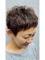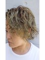 長めのマッシュウルフにスパイラルパーマを。毛量調整とハイトーンメッシュが根本から立ち上がる大胆な毛束を表現。
