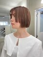 パツンとラインが可愛いミニボブにサイドバングをつくることで少し個性的なデザインに♪ハチ上に細めのハイライトが入っているのでやわらかいカラーにさらにやわらかさが出てくれます♪