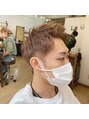短く王道なシルエットにデザインカットしたらメンズも明るい髪色に♪♪♪1~2回のブリーチで作る、優しく見えるブラウンカラーはどんな人にも似合いやすくオススメです!