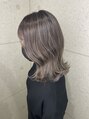 全体に細めのハイライトをいれたナチュラルハイライトです。ベースは9トーンのベージュでカラーしてます。