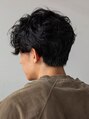 センターパートのカットベースにナチュラルウェーブパーマをかけたスタイル。襟足は刈り上げすぎない長さでナチュラル感を出しています。