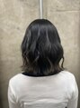 全体にラベンダーアッシュで赤みの無い暗髪に。インナーをブリーチで明るくしてからラベンダーでオンカラー。仕事や学校が厳しい方にオススメな綺麗目ヘアスタイルです。