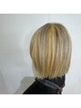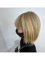 ボブにカット後ミルクティーベージュをベースにイエローハイライトを入れました