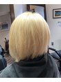 全体的にブリーチが3~4回必要になります。ブリーチ後、シルバー系のカラーでオンカラー。ケアブリーチ使用することで、ダメージをかなり軽減できます。ブリーチ回数や料金等は、来店時に気軽にご相談ください。