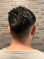 左から右にサイドバックに流し、右サイドはツーブロックになっております。バリカン4mmを使用し、地肌が見える位スッキリと!バックはハサミでグラデーションに刈り上げです。<理容室>麻布十番/メンズ/バーバー/床屋/executiveclub/理容室/シェービング