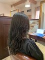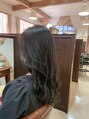 大きなウェーブが可愛い王道のロングスタイルです。顔まわりはレイヤーが入っているので、重すぎない、柔らかい抜け感が人気です。秋らしいオリーブのくすみ感がダークトーンでも柔らかい印象です。
