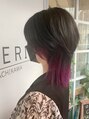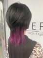 ウルフカットスタイルのインナーカラーデザインです。ブリーチ後にカラートリートメントのパープルをのせました。