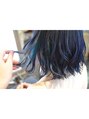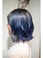 全頭ブリーチしている髪にデザインカラーをしました!寒色系でまとめたカラーリングです!
