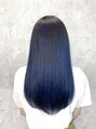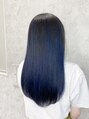 前回2回ブリーチをされてたお客様にブルーラベンダーで染めた仕上がりになります!しっかり暗くするとブルーがはっきりでてきます!