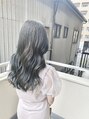 全体を濃いめ寒色系に、もともと入っていたハイライトを薄めの青っぽく染めたスタイル!! 巻いてもそのままでも可愛いです♪ かなり濃いめの寒色系なので、色落ちしても赤みがかなり出にくくなっております☆