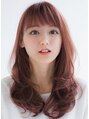 ピンクアッシュと毛先のパーマで甘さと柔らかさを表現