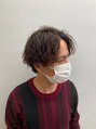 波巻きパーマをセンターパートでスタイリングしたスタイルになります。