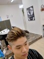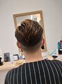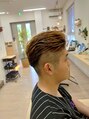 サイド0・2ミリ、襟足グラデーション刈り上げにショートレイヤーを組み合わせて、分け目をつけたときにグラデーションとレイヤーの流れがつきやすいようにカットしております★細めのブリーチハイライトを入れてカッコ良い髪色に★