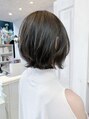 しっかり暗髪カラーです。ダークグレージュ!(ブリーチ履歴があるカラーです)ブリーチをしてるので暗くても透明感がしっかりあります。カットはレイヤーがしっかり入ったボブです。軽さもしっかりあって重たく見えません。レイヤースタイル増えてきてます。