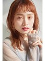 ナチュラルな動きあるミディアムヘア。ショートバングも柔らかい動きがあるので、個性的すぎず可愛さを引き出します。アプリコットカラーで艶感も◎大きめのウェーブと束感ある前髪で、作り込み過ぎないことが◎オイル・バーム仕上げで少しウエットに。