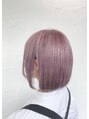 ハイトーンカラーボブ。ハイブリーチしてベースカラーを明るくしてからホワイトピンクアッシュを入れます。ミニボブにカットして髪質改善トリートメントしてコンパクトなボブに。色落ちしても可愛いのでオススメです。
