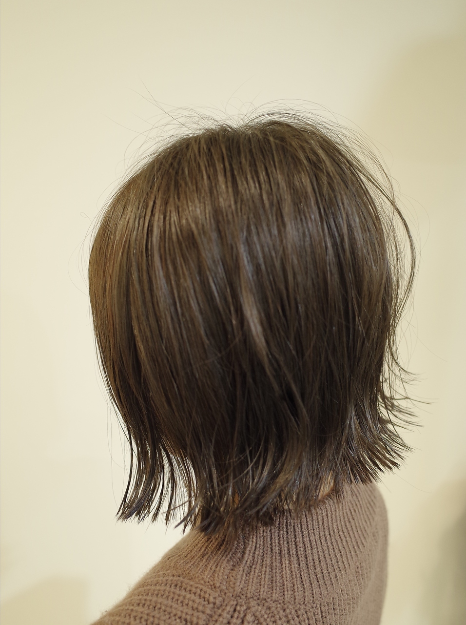 ベージュ系のベースカラーにハイライトとローライトを入れることで平面的なボブスタイルも立体的に!