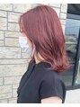 ベリーピンクカラー。ピラミンゴカラーは発色も良く色持ちもとても良いです◎明るい髪色の方は、ブリーチなしでもこれだけお色を出せます(^^)髪質改善☆美髪エステトリートメントで艶々に♪