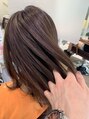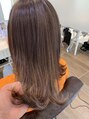 根本にはしっかり白髪染めハイライトイルミナカラーで透明感のあるスタイルに全体のカラーを少し明るいくらいにしているので伸びた時に目立ちにくくなります。ハイライトも複数回入れたしていくとナチュラルなグラデーションベースになります。