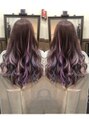 パールピンク×パールパープル×パープル×ブルー×スカイブルーで色々な色を使いエクステでユニコーン風☆地毛を暗めに染めてきてくださったのでよりエクステの色が映えてかわいーー♪♪