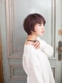 かわいい印象になりすぎないように、フォルムにメリハリをつけて前がみもストレートラインに。人気のマッシュショートを大人っぽく仕上げました☆カラーはピンクヴァイオレットでアンニュイで艶っぽくしています。大人女子におすすめなスタイルです☆
