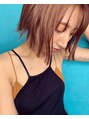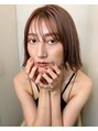 大人オレンジベージュに切りっぱなしボブ。オレンジにベージュを混ぜる事で大人っぽく、品よく暖色系を楽しめます!