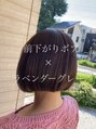 艶感たっぷりのラベンダーグレージュ♪ラベンダー系のお色はお肌のトーンもアップしてくれます!!前下がりボブは襟足を短く切るので肩に当たって跳ねてしまうのが嫌な方にオススメです!