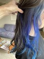 ブルーのインナーカラーはケアブリーチでダメージを抑えながらもしっかり色を抜いて入れます。 ブルーの色味も、ダメージのないカラー剤を使用するので仕上がりもキレイ