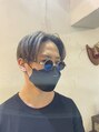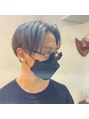 ブリーチしてからプラチナアッシュで染めましたツーブロックにして、少し立ち上げたセンターパートで軽さとラインをだしました。