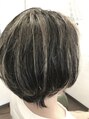 地毛の黒髪にメッシュを全体的に入れてます。メッシュが目立つように、少し黄色味をとる程度の色素を入れてます。