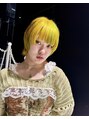 ペールトーンのベージュとパープルのコントラストカラーの喉ライン切りっぱなしボブスタイルです。表面に薄めにベージュがある事で隙間からパープルが見えるお洒落なコントラストカラーになっております。