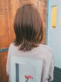 最近、流行の外ハネミディ!わざと肩に付く長さにして自然に外にハネるようにしています!レイヤー入れず、切りっぱなしにしました。内に巻けばボブにもなります!コテで巻くとさらにキュートな印象を与えてくれます!