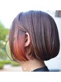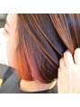 全体をオレンジブラウンに、インナーカラーは一回ブリーチをして、オレンジとピンクをのせました!耳にかけたらばっちり見えます!下ろせば隠せます!