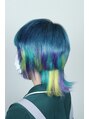 「クラゲっぽくしたい!」そんなオーダーにより出来たスタイル!ディープブルーベースにパープル、グリーン、イエローを織り交ぜた派手派手ヘアー♪ティンセルのアクセントが深海クラゲっぽさをより演出!!
