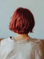 ショートのレングスの外ハネスタイルです。レイヤーをいれてハネさせることによって動きが出て立体感のあう仕上がりにみせることができます。カラーは個性的なピンクレッドです。スタイリング剤は艶感がでるオイル又はバームがおすすめです。