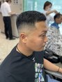 ハイフェードスタイルになります。フェードスタイルの中でも色彩の白が多く見えるようなカットで、男のかっこよさを引き立ててくれるスタイルになります。また短くカットしている分もちもいいのでオススメのスタイルになります。