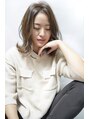 伸ばしかけでもしやすいミディアムラインのナチュラルボブ。グレージュカラーで柔らかい透明感。