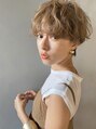 目上ギリギリのニュアンスマッシュをスタイリングでラフに動かし、大人カジュアルに。ショートでもトップを長く残すことで女性らしさもステイ。カラーは透けるベージュでやわらかく、エアリーな束感を引き立てます。