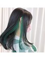 グリーンのインナーカラーを黒髪で合わす個性的なおしゃスタイル/ホットペッパービューティー
