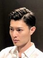 ベースはツーブロックの大人マッシュショート。七三分け×オールバックのスタイリングで、フォーマルな場でも魅力的でカッコよく映えるよう仕上げました。クラシックなスタイルに現代風アレンジを取り入れた、大人の色気と魅力がいっそう際立つスタイルです。